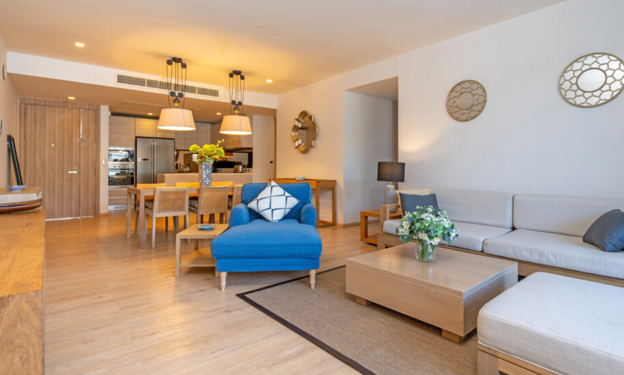 The residence is comprised of 5 bedrooms, 2 master bathrooms, 4 on-suite guest bathrooms, 2 powder rooms, 2 offices, 2 dressing rooms, a media room, an oversized eat-in gourmet chef’s kitchen, and a sprawling 1,100 square-foot Great Room perfectly situated in the prime southwest corner of the floor.
